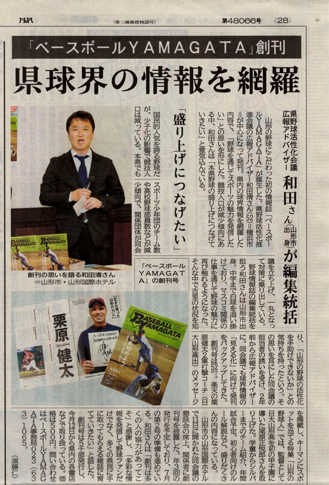 デザイン山形がデザイン統括をさせていただいた「ベースボールYAMAGATA」が山形新聞に掲載されました😊